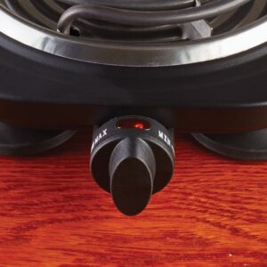 Use the powerful 1000 watt Brentwood Single Electric Burner for all your cooking needs. Adjust the heat from low to high. Electric coil delivers even heating. Convenient indicator light illuminates when powered on. Portable, lightweight design takes up little counter space and easily stores. Easy to clean surface and drip pan. Non-slip feet keep the unit secure in place.