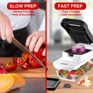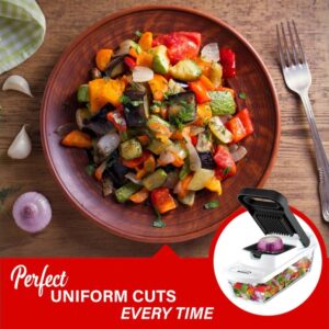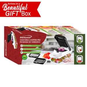 Use Brentwood KA-5023BK Pro Food Chopper and Vegetable Dicer with 6.3-Cup Storage Container and Stainless Steel Blades for effortless food prep. Chopped, diced, and sliced food falls right into the 6.3-Cup Storage container. Cleaning comb included for easy cleanup.