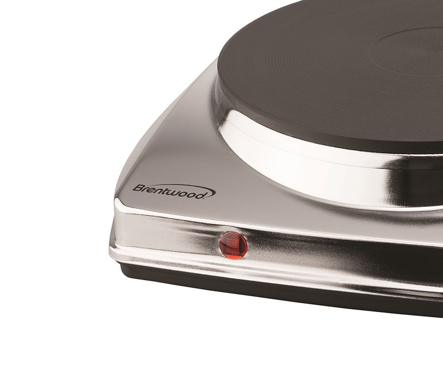 The powerful 1000w Brentwood Electric Hotplate produces adjustable, even heat. Features a power indicator light. Small and lightweight design takes up little counter space. Easy to clean.