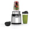 The Nutri Ninja | Ninja blender duo with Auto-iQ has 1200 watts of professional power and performance. The XL 72 oz. (64 oz. Max Liquid capacity) pitcher features total crushing technology to crush through ice and frozen ingredients in seconds to create creamy frozen drinks. The Nutri Ninja blade assembly pulverizes whole fruits and vegetables for nutrient & Vitamin extraction. Blend personalized smoothies and juices directly in the Nutri Ninja cup, attach the lid, and enjoy on the go. Extract a drink containing vitamins and nutrients from whole fruits and vegetables.